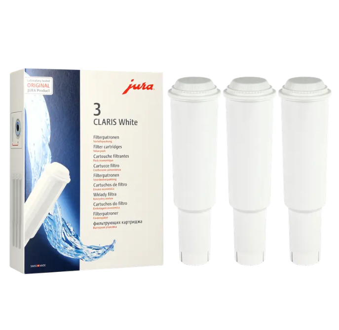 Фільтр для еспрессо-машини Jura CLARIS WHITE відповідає за очистку води від кальцію, хлору та інших речовин, запобігає утворенню накипу, зменшує відкладення. Один фільтр очищає 50 л води. Підходить для кавоварок: Jura Impressa C5; Jura Impressa C9 One Touch; Jura Impressa F50; Jura Impressa F70; Jura Impressa J5; Jura Impressa S9 One Touch; Jura Impressa Z5 One Touch Chrom / Alu / White; Jura Subito.
