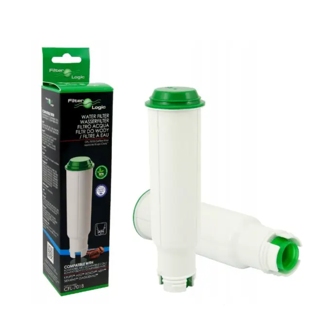 Фильтр для очистки воды Filter-Logic CFL-701B. Чистая и смягченная вода продлевает срок службы кофейного аппарата и обеспечивает непревзойденный вкус и аромат кофе. Как аналог подходит для кофеварок Krups, Bosch, Siemens, AEG, Neff. Оптимальный срок службы фильтра - 2 месяца.