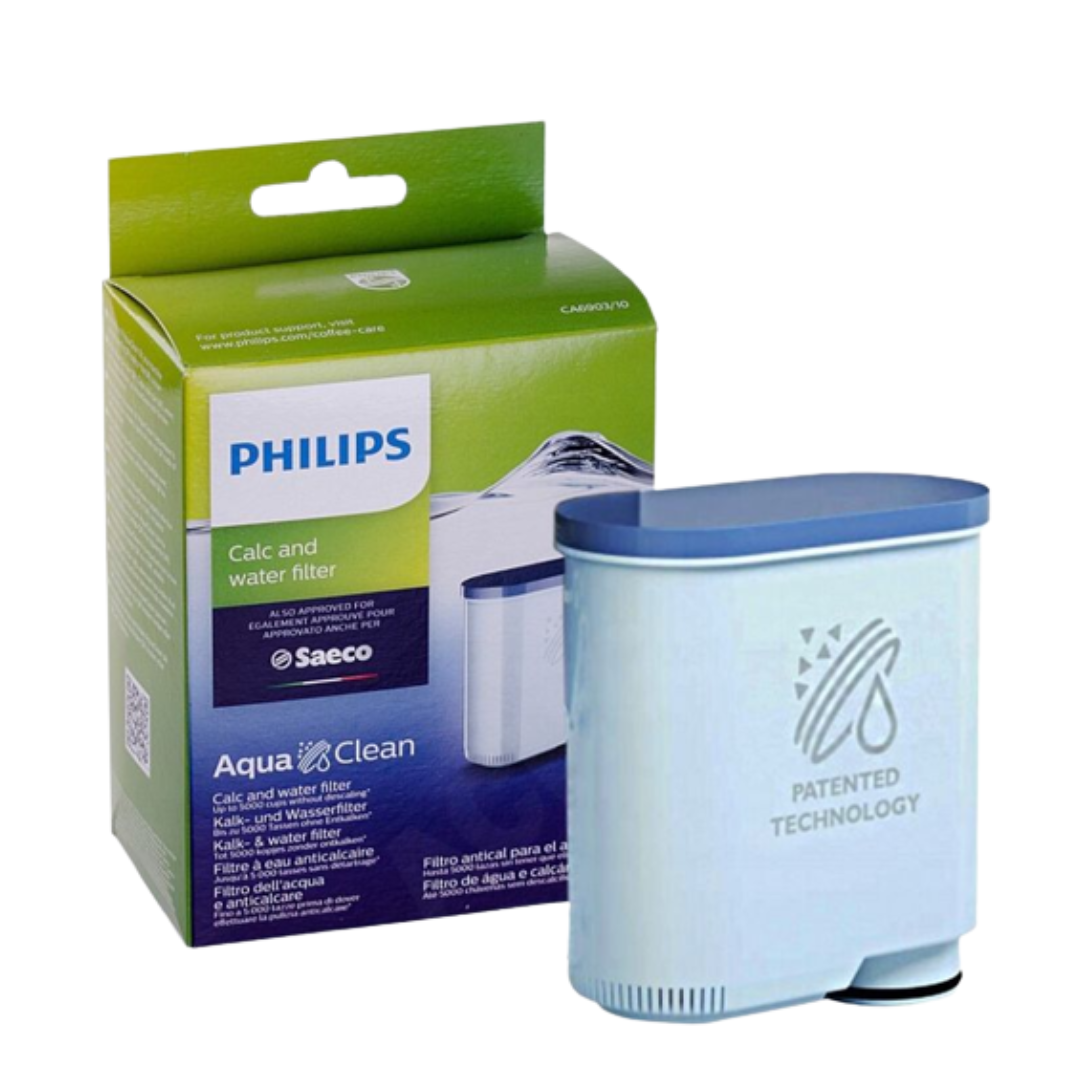Запатентований фільтр-картридж для води Philips-Saeco AquaClean дозволяє готувати до 5000 чашок кави без проведення очищення автоматичної кавомашини від накипу. Фільтр необхідно замінювати кожні 3 місяці. В наявності аналоговий фільтр Filter Logic CFL-903